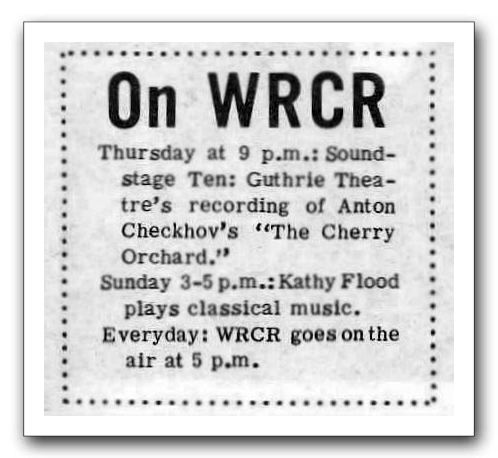This mention of WRCR is from the November 11, 1969 Collegian newspaper. Ned Cohen was the host of "Sound Stage Ten".found in the college archives
