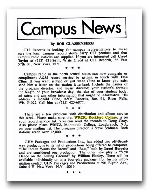 This is fron the November 7, 1970 issue of Billboard magazine. That audience reach must be a typo, WRCR was lucky to reach 12,000 people a year!