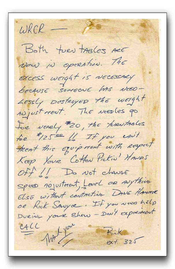 A 1965 warning to announcers from engineer Rick Sawyer.