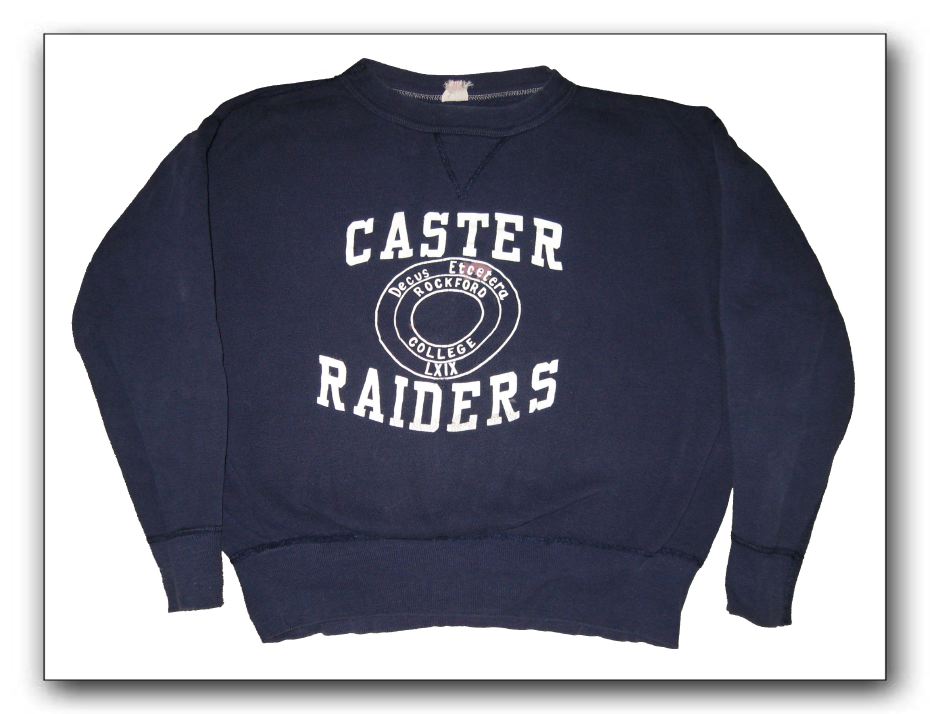 While not as collectable as a CJ sweatshirt, this Caster Raiders sweatshirt remains rare. It dates from 1967 or 68.photo by Ross Hunter