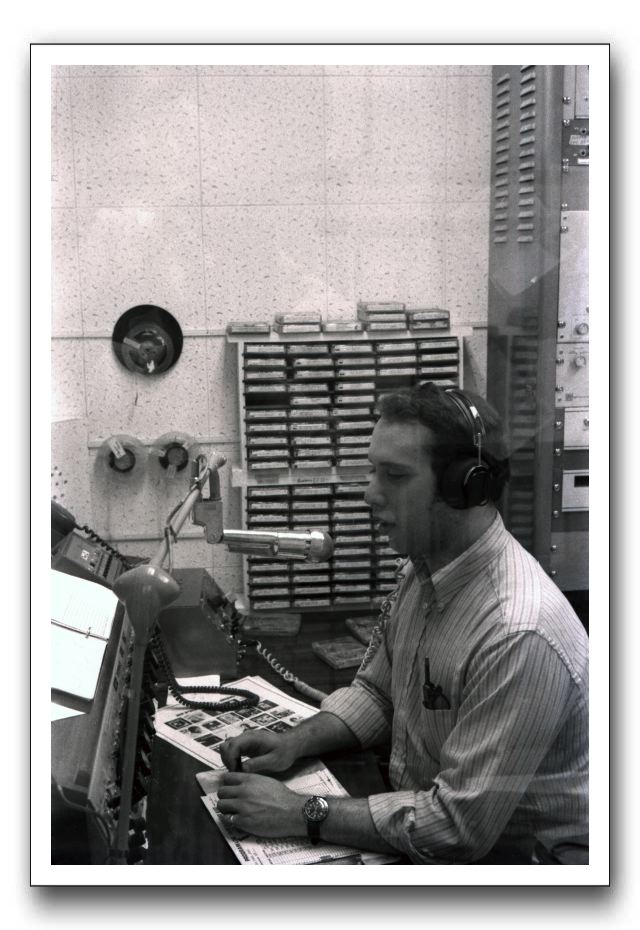Ned Cohen broadcasting on WRCR from the upper Burpee Center studios in the Spring of 1970.