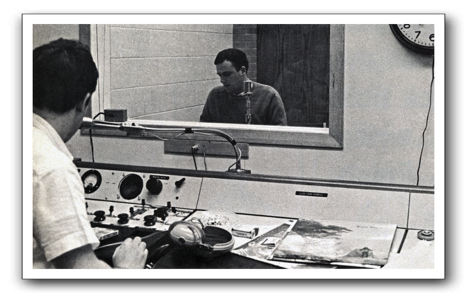 Joe Novak (l) and Eric Hansen (r) in the WRCR studio. The photo was in the January 13, 1965 issue of The Collegian. WRCR had moved to this space in upper Burpee Center in the Fall of 1964 after beginning broadcasting in a dorm room in Nelson Hall in the Spring of 1963.