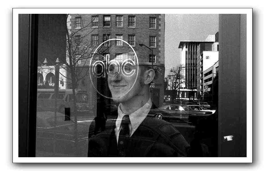 Ross Hunter mugging for the camera at the Washington, DC headquarters of ABC News. ABC invited Intercollegiate Broadcasting System (IBS) convention attendees to visit their facilites on March 23 1969. Mark Groth, Ross Hunter and Ned Cohen represented WRCR.
