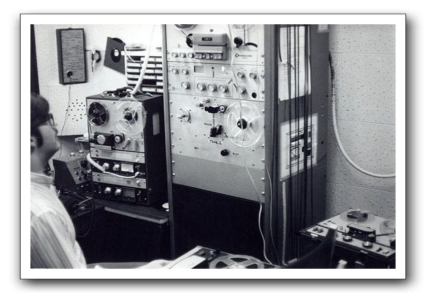 Mark Groth. That's Mark's Ampex recorder on the left and Ross Hunter's Sony on the right. There's another tape deck just barely visible at the bottom center. Plus the two in the rack.