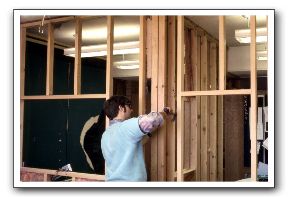 Mark Groth dismantling WRCR 2.0 in the Spring of 1970. Mark is in Studio B. The control room was on the left, the office on the right.Scanned from a 35mm Ektachrome slideRoss Hunter photo, May 1970