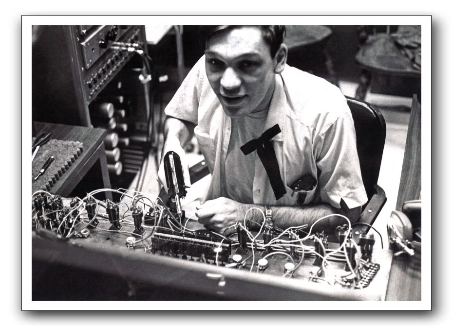 David Shelley Hammer was WRCR's Chief Engineer during the 1966-67 academic year. He's pictured here working on the board in the upper Burpee Center studios. He was also an announcer who hosted "Shelley's Showcase". He spent almost 10 years in part-time studies at Rockford. He died in the fall of 1966. After his death the radio station staff considered changing the call lettrers to WDSH.