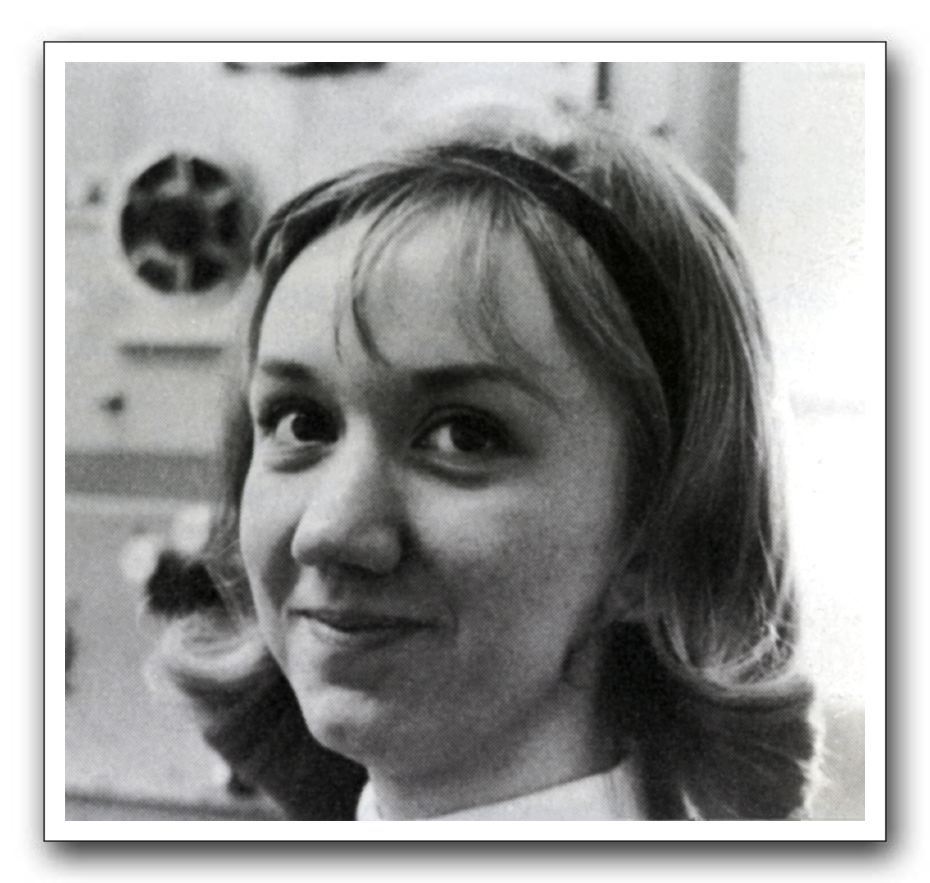 WRCR Promotions Director Joan Johnson in a 1965 yearbook photo. This picture was taken in the upper Burpee Center studios.Scanned by Stina Tanaglia