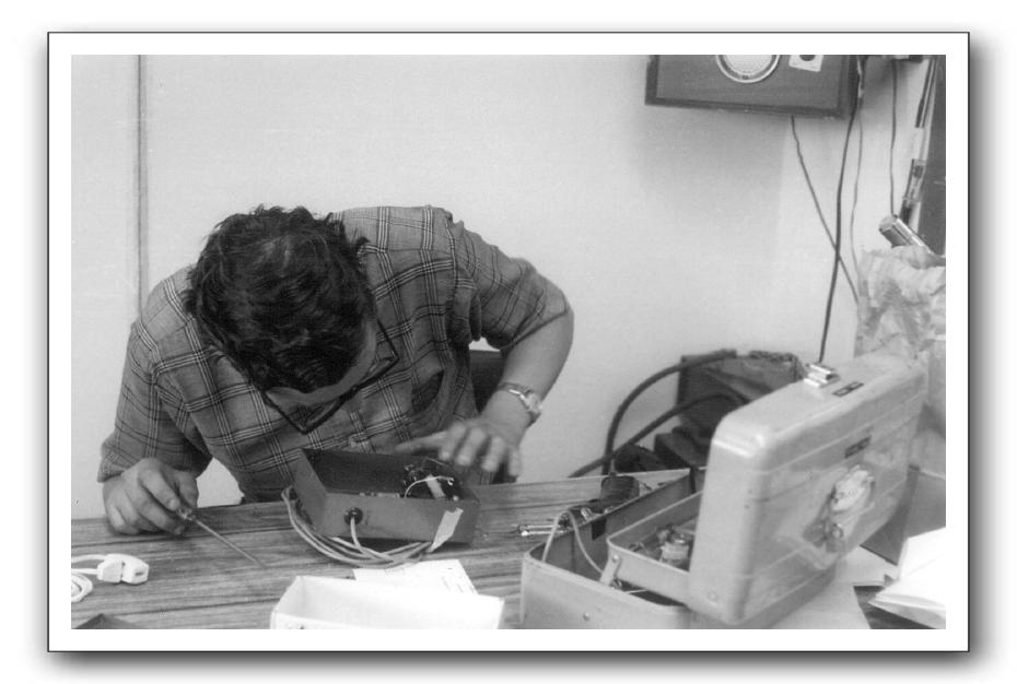 Chief Engineer Brian Dubin, September of 1969. Brian is working on one of his "boxes". He built a number of them over to years to make life easier for the WRCR staff.Ross Hunter photo