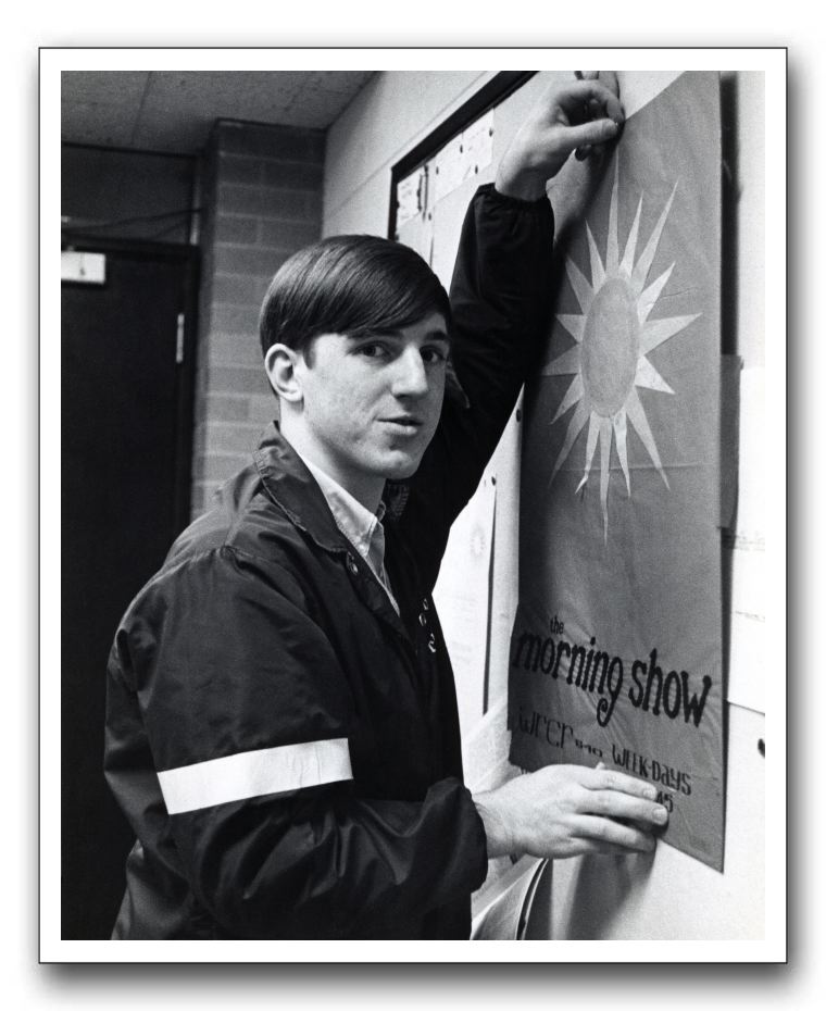 Ross Hunter, Public Relations, with a poster for The Morning Show. Spring 1968