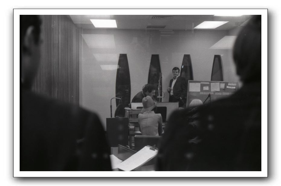 You probably can't read the names on the cork board, but they appear to be the on-air line up: Joel Sebastian, Jim Stagg, and Ron Brittian are readable.