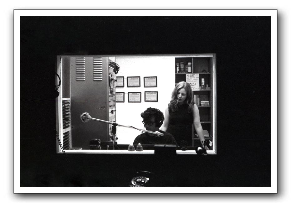 Jim Landis Buchman and Kathy Hackwith in the WRCR control room. February 1970.