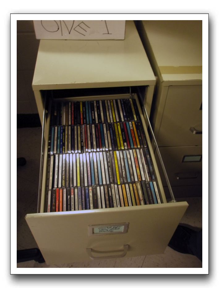 A drawer full of CDs that were discovered in storage at the college. Many of these belonged to WRCR before it ceased operation in 1994.Cece Forrester photo