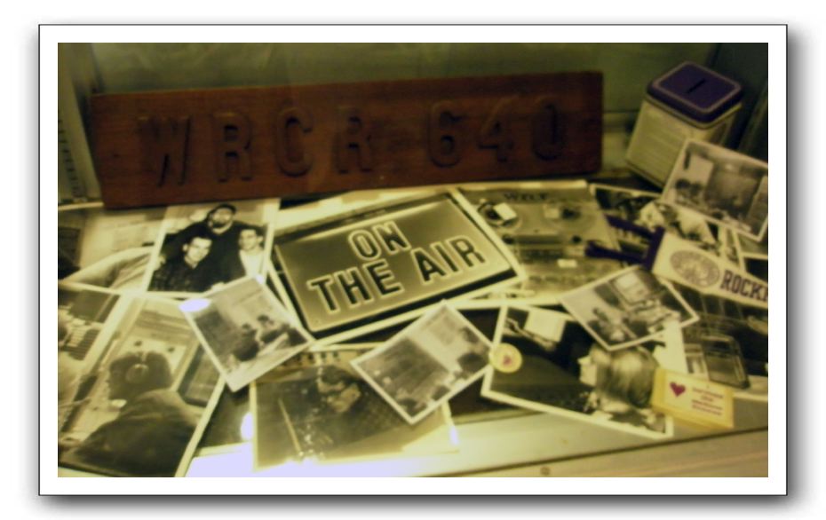 Many old WRCR photos were collected for display in the lobby of Burpee Center. The wooden WRCR sign appears in numerous WRCR photos beginning in the early 1970s.Cece Forrester photo