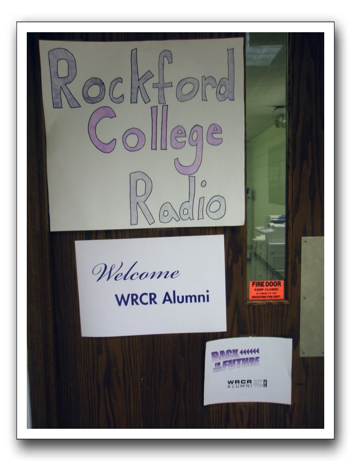 Signs on fire doors in the hallway of lower Burpee Center leave little doubt that the radio station is near and that WRCR alums are welcome during the 2011 reunion weekend.Cece Forrester photo