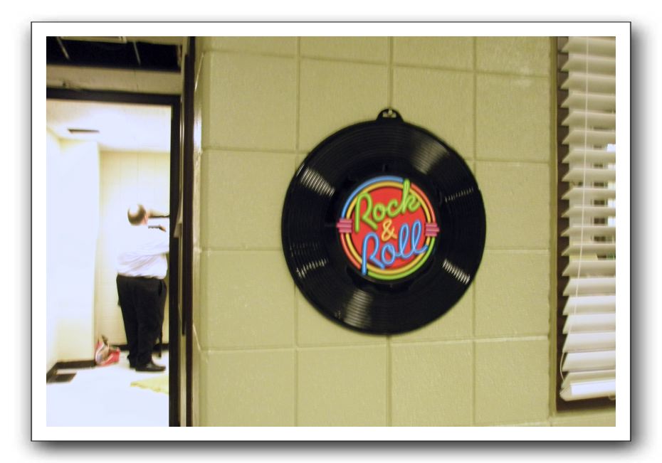 If you're interested in rock & roll, you've come to the right place. The Rock & Roll art was replaced soon after this picture was taken by the framed copy of Aquarius given to Rockford College Radio by WRCR alums. There is a photo of the record elsewhere in this gallery.