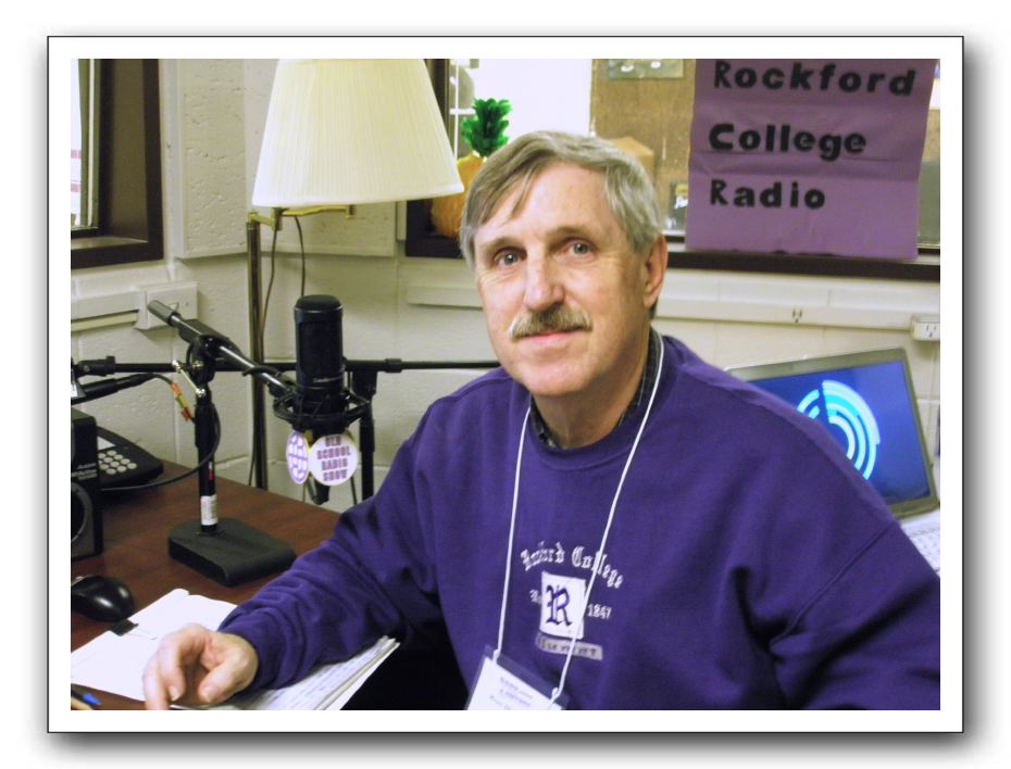 Ross Hunter getting set to begin the Old School Radio Show on Rockford College Radio. The program counted down the top 50 oldies from a collection of 45s. It was broadcast Saturday October 1, 2011 during Rockford College's reunion weekend.