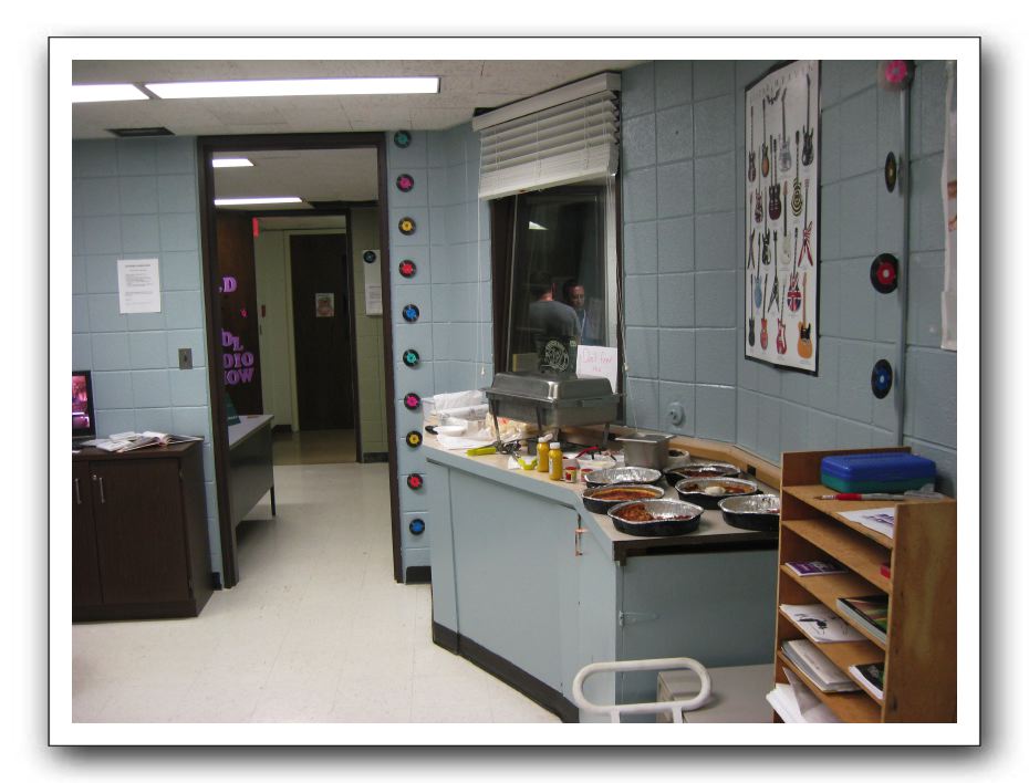 John Bace organized a "Taste of Chicago" lunch for WRCR Alumni, current Rockford College Radio staff and station visitors on Saturday October 1, 2011 during Rockford College's reunion weekend. The meal was set up in the lounge area of the radio station. When WRCR occupied this location, this room was the engineering workshop, record library, Traffic Department and storage area. The Rockford College Radio staff uses it as a lounge.