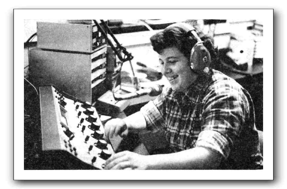 Marianne "Fudge" Pelletier. This picture clearly shows the Broadcast Engineering board and three deck cart machine that came to WRCR in the fall of 1979. They replaced equipment dating from the late 1960s. In front of the cart machines is the remote for the Magnecord reel-to-reel tape deck that was purchased in 1967.