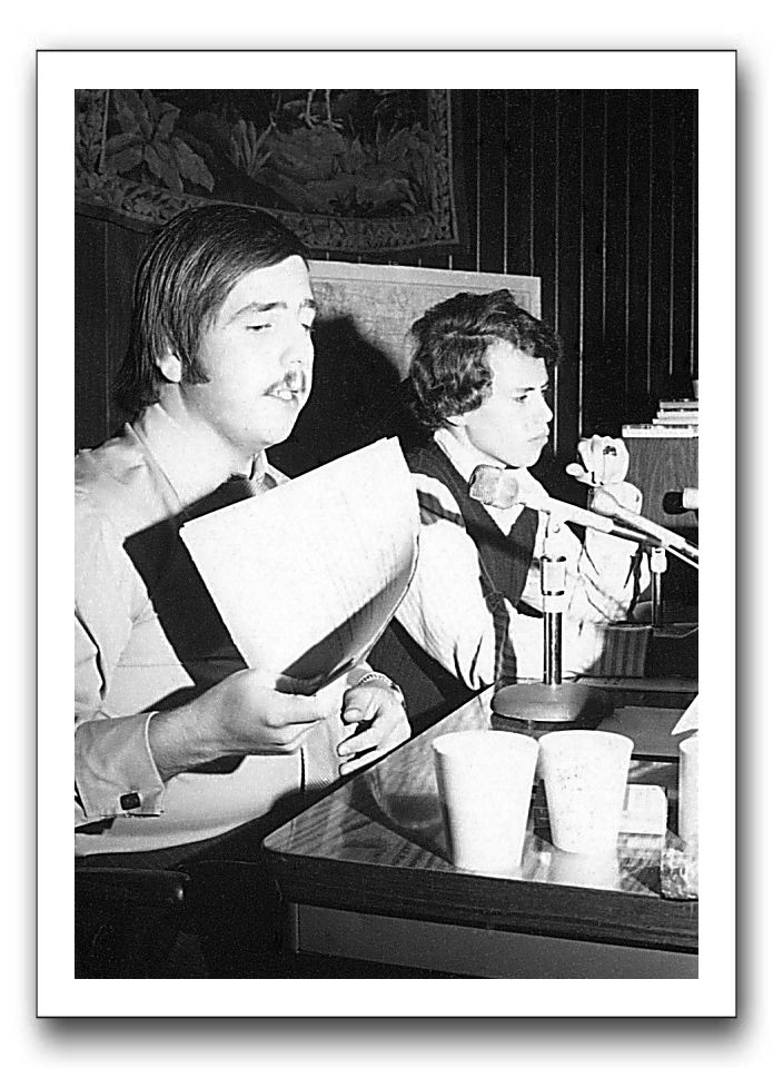 l-r: John Bace and Doug Williamson anchor WRCR's coverage of the 1972 elections. Coverage was broadcast from Forrest Cool Lounge.Collegian photo 11/17/1972