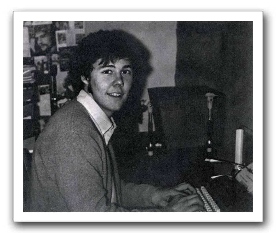 During his four years at Rockford College Jerry Mayer was Program Director, Operations Manager and General Manager of WRCR. This picture of Jerry in the lower Burpee studios is from the 1975 yearbook.yearbook scan by Stina Tanagliz