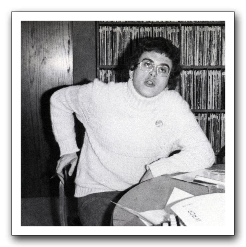 Bill Bird was WRCR's General Manager for the 1976-77 academic years. This photo was taken in Studio A of the lower Burpee WRCR location.yearbook photo scan by Stina Tanaglia