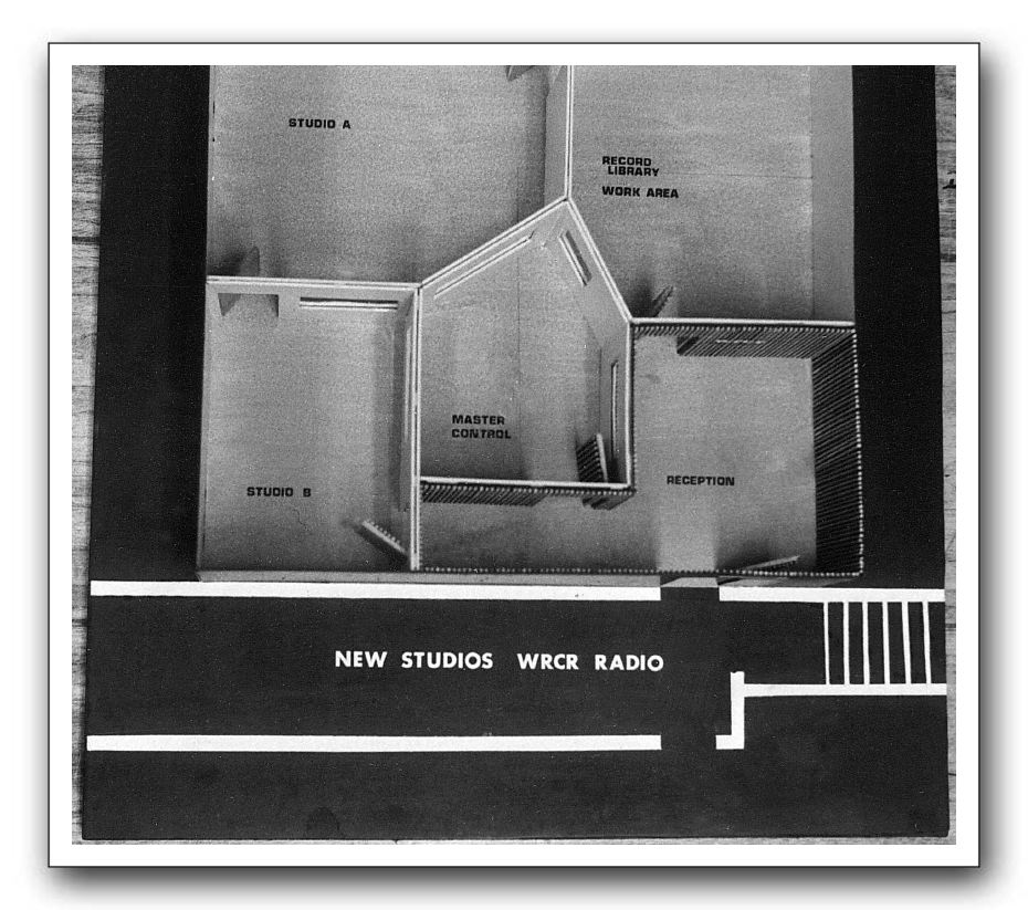When the addition to Burpee Center was being planned in the late 1960s, college vice-president John Spence said there would be space for WRCR and offered the staff the opportunity to design the new studios. This is a scale model of what the staff proposed.