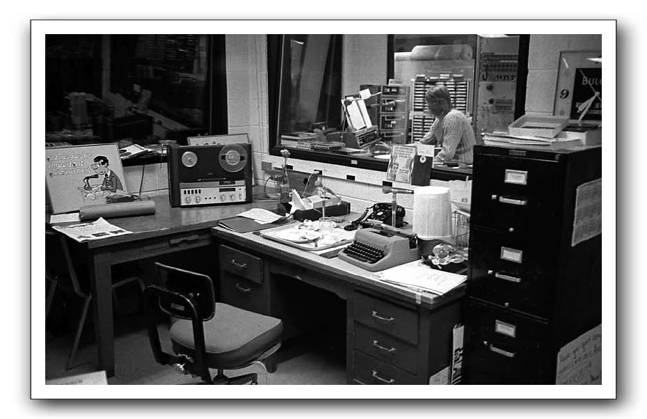 Studio B looking into the control room in the Spring of 1972. By this time Studio B was being used as WRCR's newsroom.Mark Groth photo