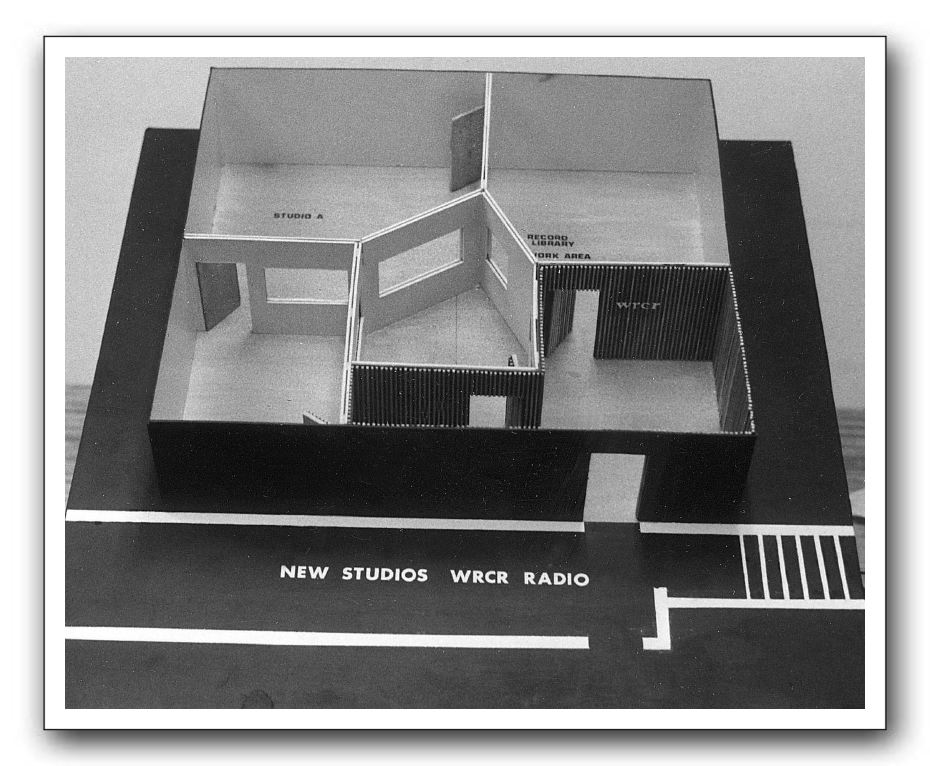 When the addition to Burpee Center was being planned in the late 1960s, college vice-president John Spence said there would be space for WRCR and offered the staff the opportunity to design the new studios. This is a scale model of what the staff proposed.