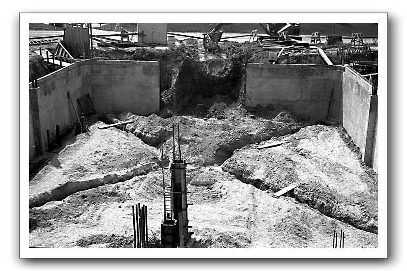 This picture, taken from the originial Burpee Center building, shows the beginning of the addition in the spring of 1969. The WRCR studios will be in the far left corner.Mark Groth photo