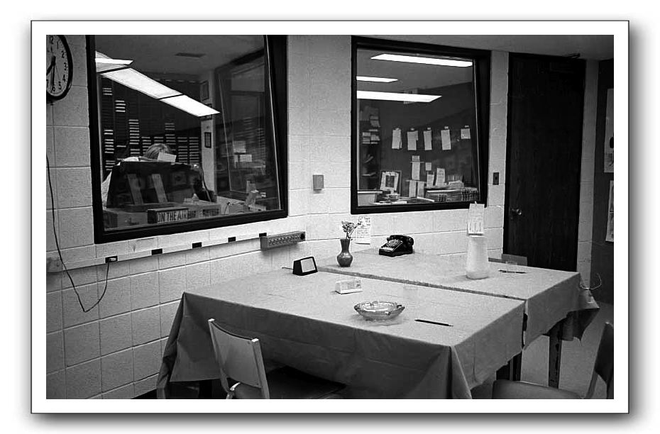 Studio A looking toward the control room window on the left and studio B on the right.Mark Groth photo 1971