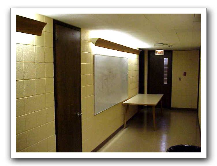 Sandy Ballin visited the RC campus in the Fall of 2004 and found the lower Burpee WRCR studios abandoned. The door at the left is to Studio B and the main entrance is at the end of the hall.Sandy Ballin photo