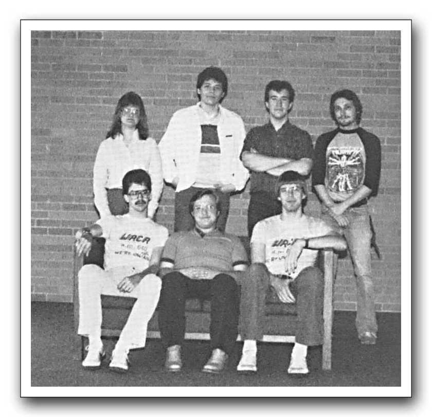 1984-85 Executive Boardfront row l-r: Curt Anderson, Brian Carbone, Tim Welkback row l-r: Roxie Sergott, Mark Ostaszewski, Tom Allen, Mike Herbertyearbook photo