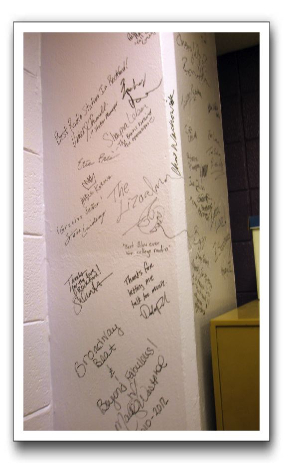 Autographs of visiting musicians, other guests and staffers are now being added to the walls in Studio B aka the Interview Room.Cece Forrester photo