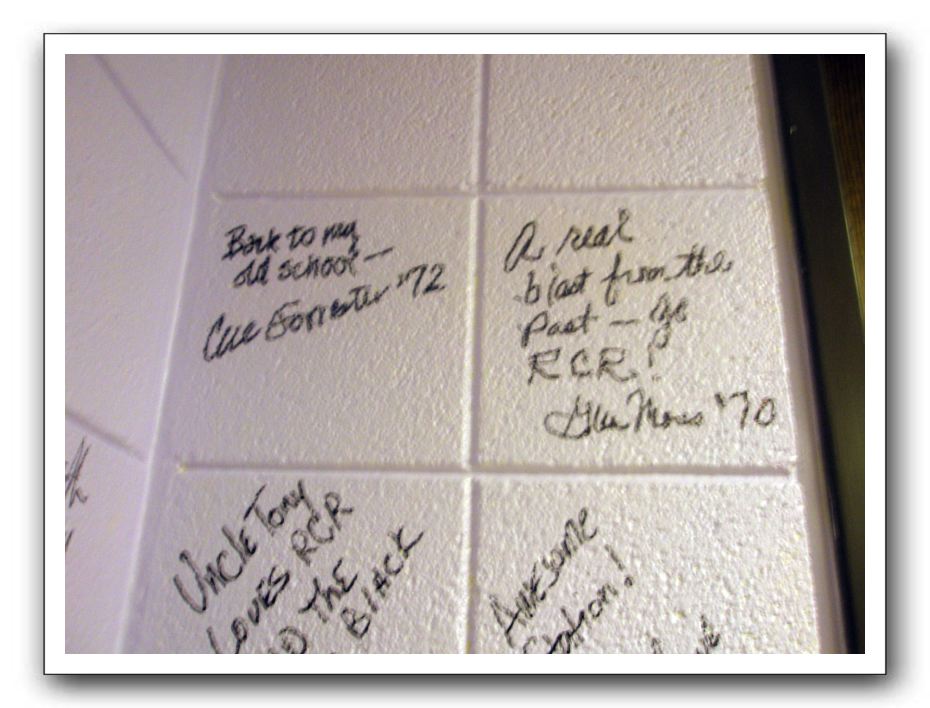 Cece Forrester '72 and Glen Moss '70 have added their signatures to the wall.