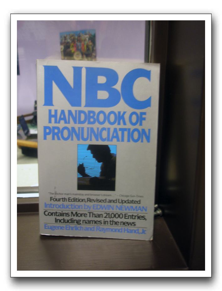 NBC pronunciation handbook on display in control room for those pesky words you don't know how to pronounce.Cece Forrester photo