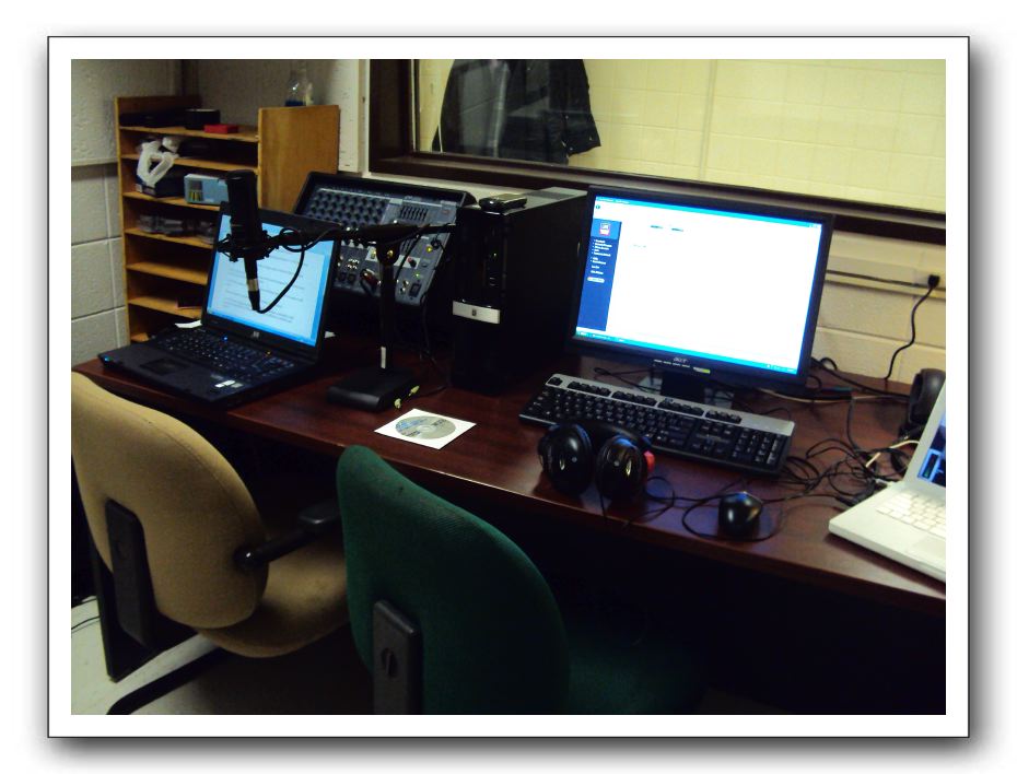 This is the control room set up for Rockford College Radio's streaming operation as of January 21, 2011. The room is the old WRCR control room. The window looks into the old Studio B.photo by Cassie Swanson/Rockford College