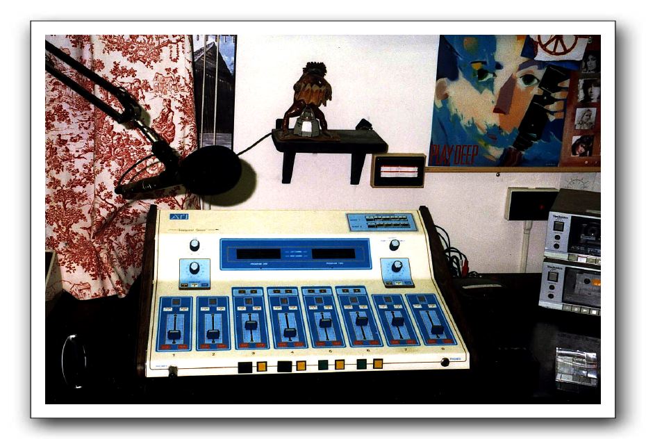 There is some evidence in the "Printed Items"/"letters" album that this board and the two cassette decks at the right may have been donated by Webb Kerns during a 1989/90 effort by John Quinn and David Wilson to revitalize WRCR.