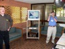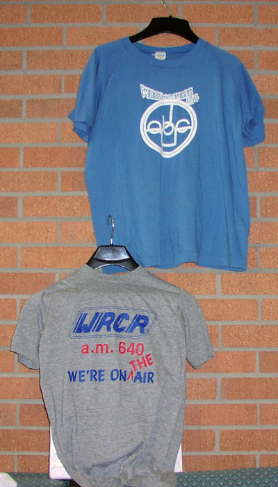 Rich Hoge and Michael Herbert each brought WRCR t-shirts to display. The blue one is from about 1974 and the gray one is from about 1984. | Many of the reunion attendees stayed at the Ramada. The motel had this sign in the lobby. | Saturday morning we presented a DVD and eight audio CDs of WRCR audio to the college archives. |