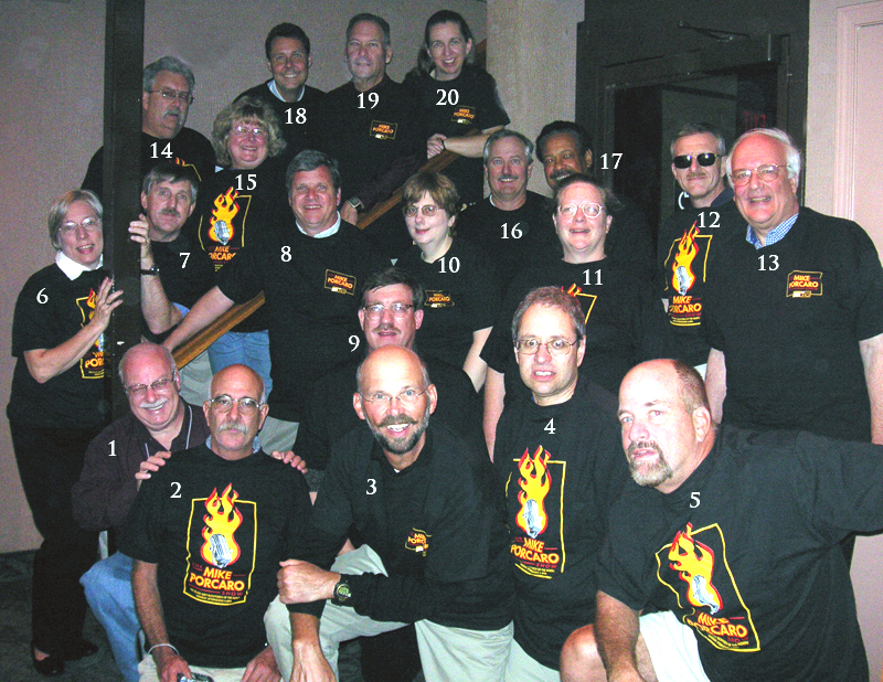Here's some of the group in t-shirts sent by Mike Porcaro '69. Mike's in Alaska and couldn't make the reunion. IDs at right. |