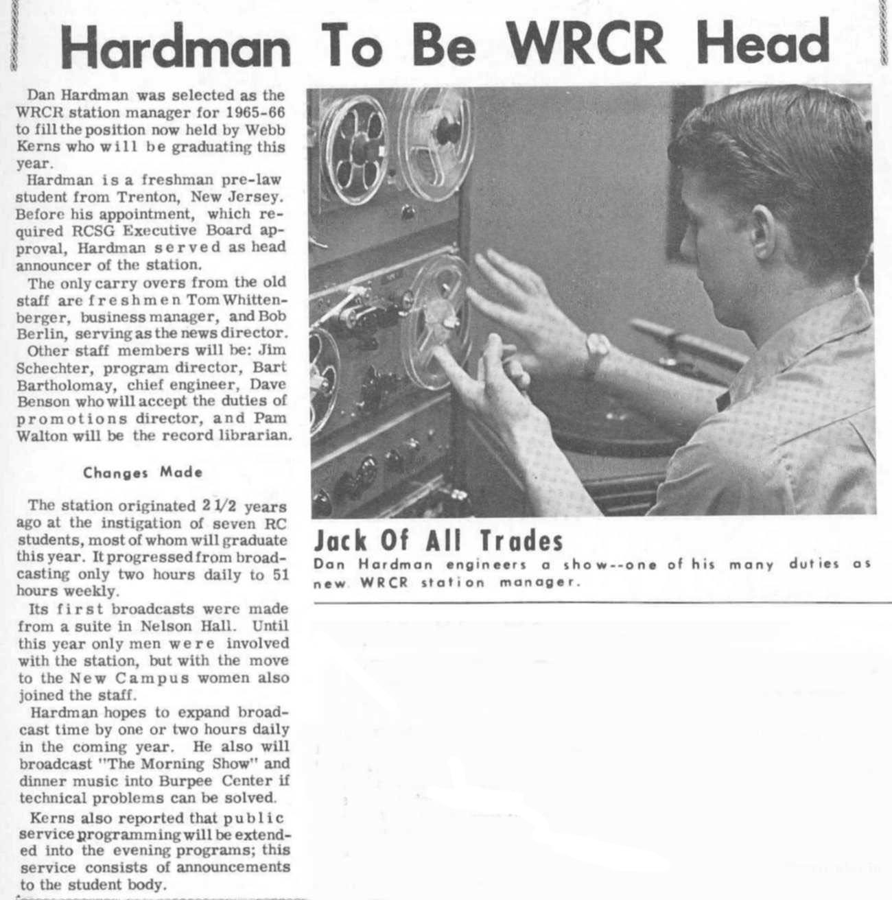 April 28, 1965 - Hardman To Be WRCR Head (picture)