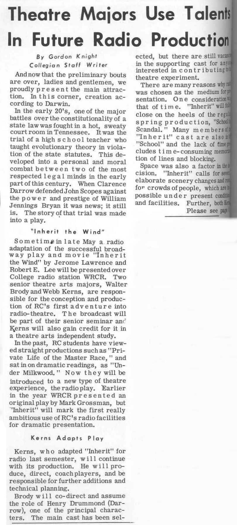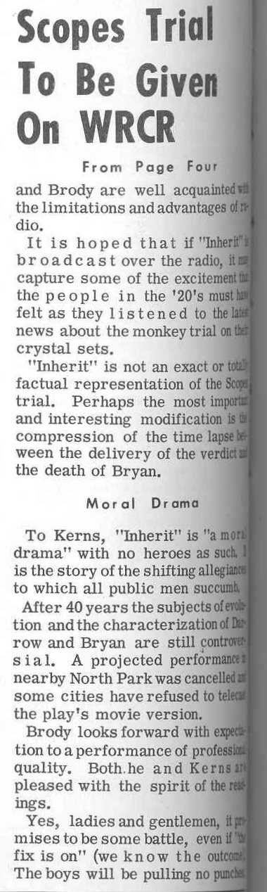 April 28, 1965 - Scopes Trial To Be Given on WRCR