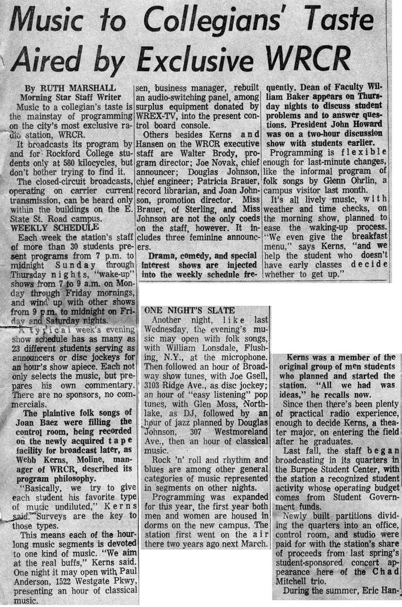 January 10, 1965 - "Music to Collegian's Taste" Rockford Register Star article