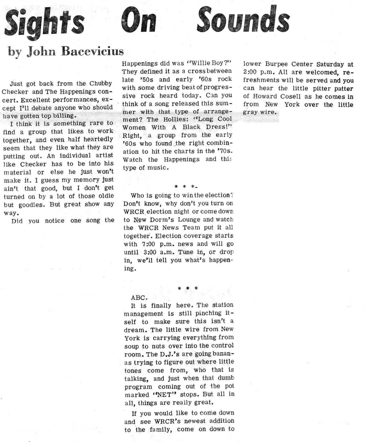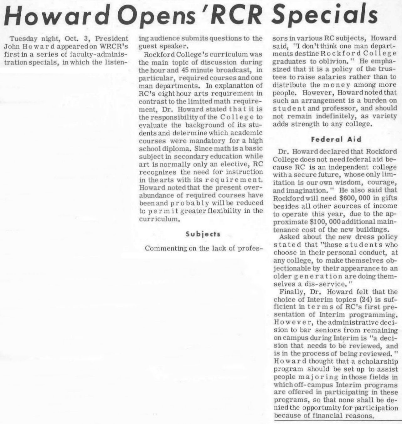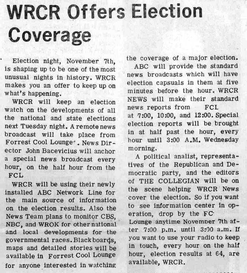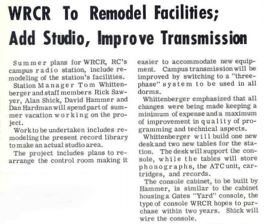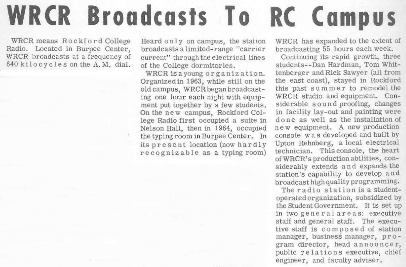 October 15, 1966 - WRCR Broadcasts To RC Campus
