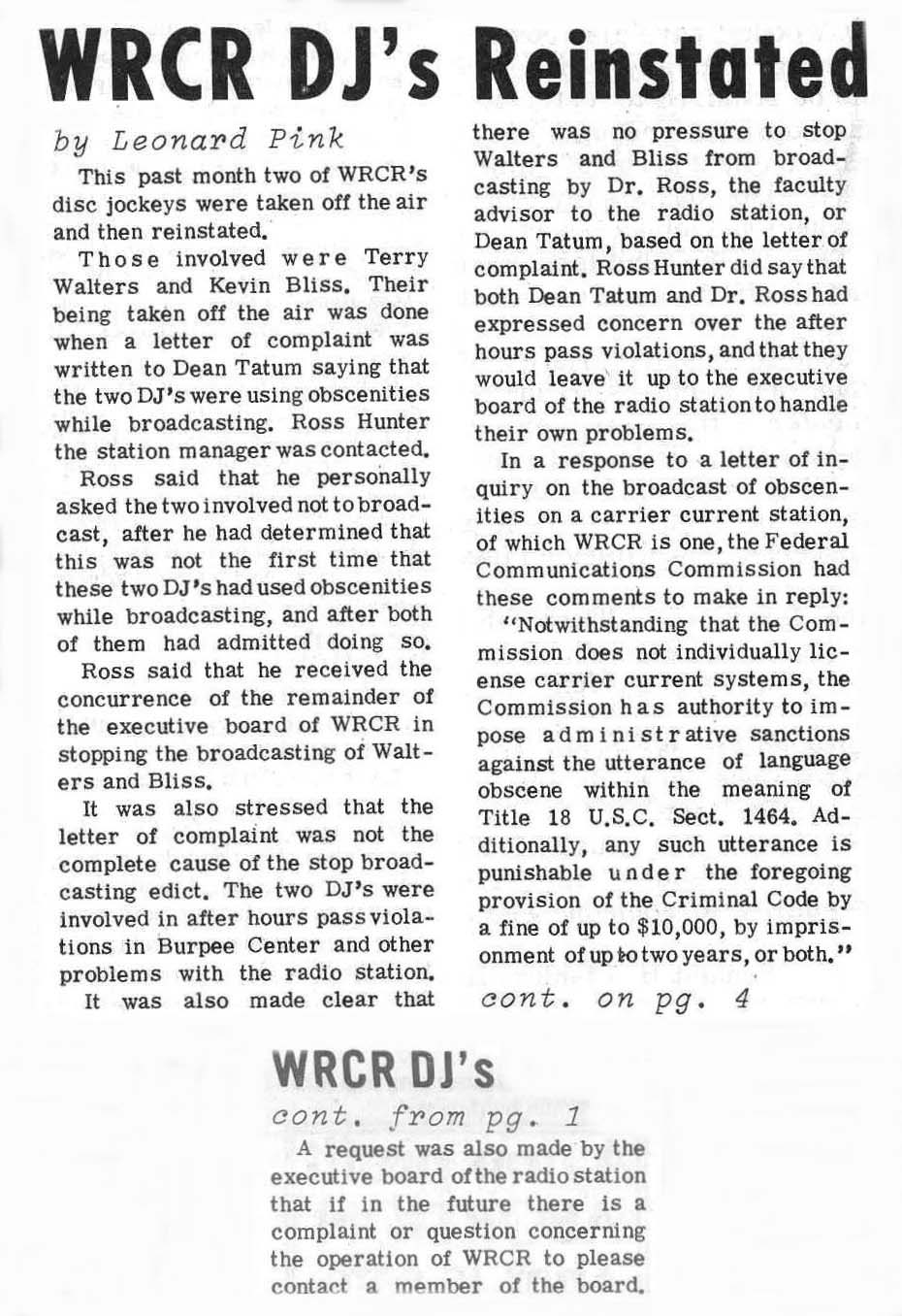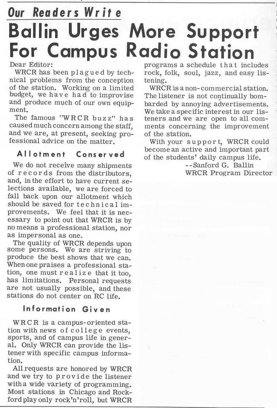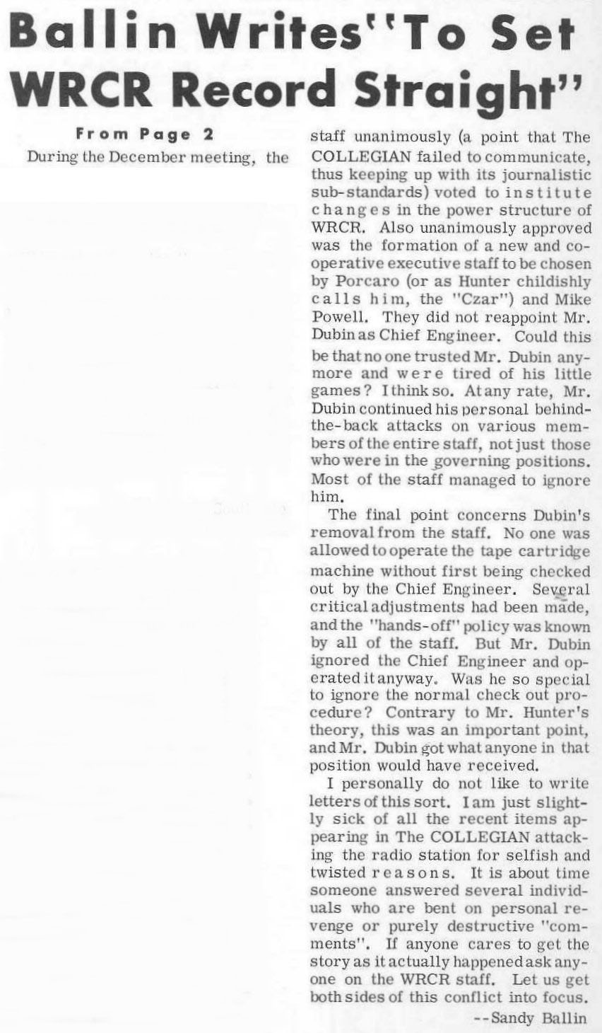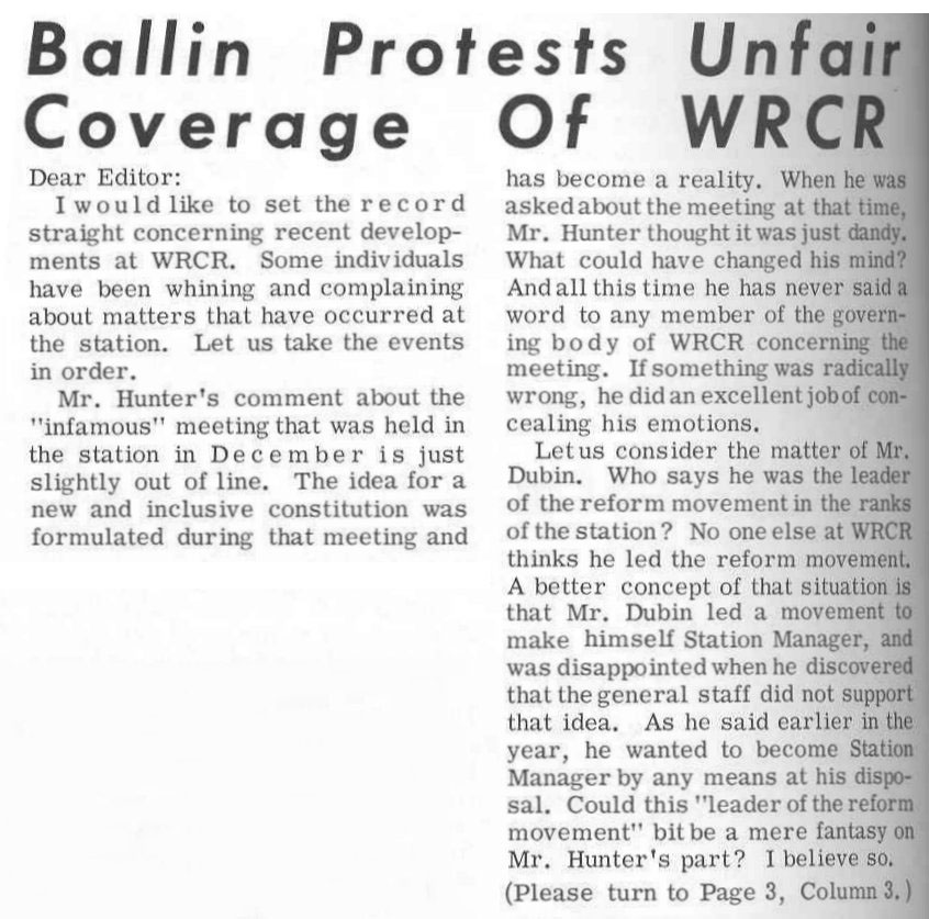 February 19, 1969 - Ballin Write "To Set WRCR Record Straight" (letter to the editor, part 2)