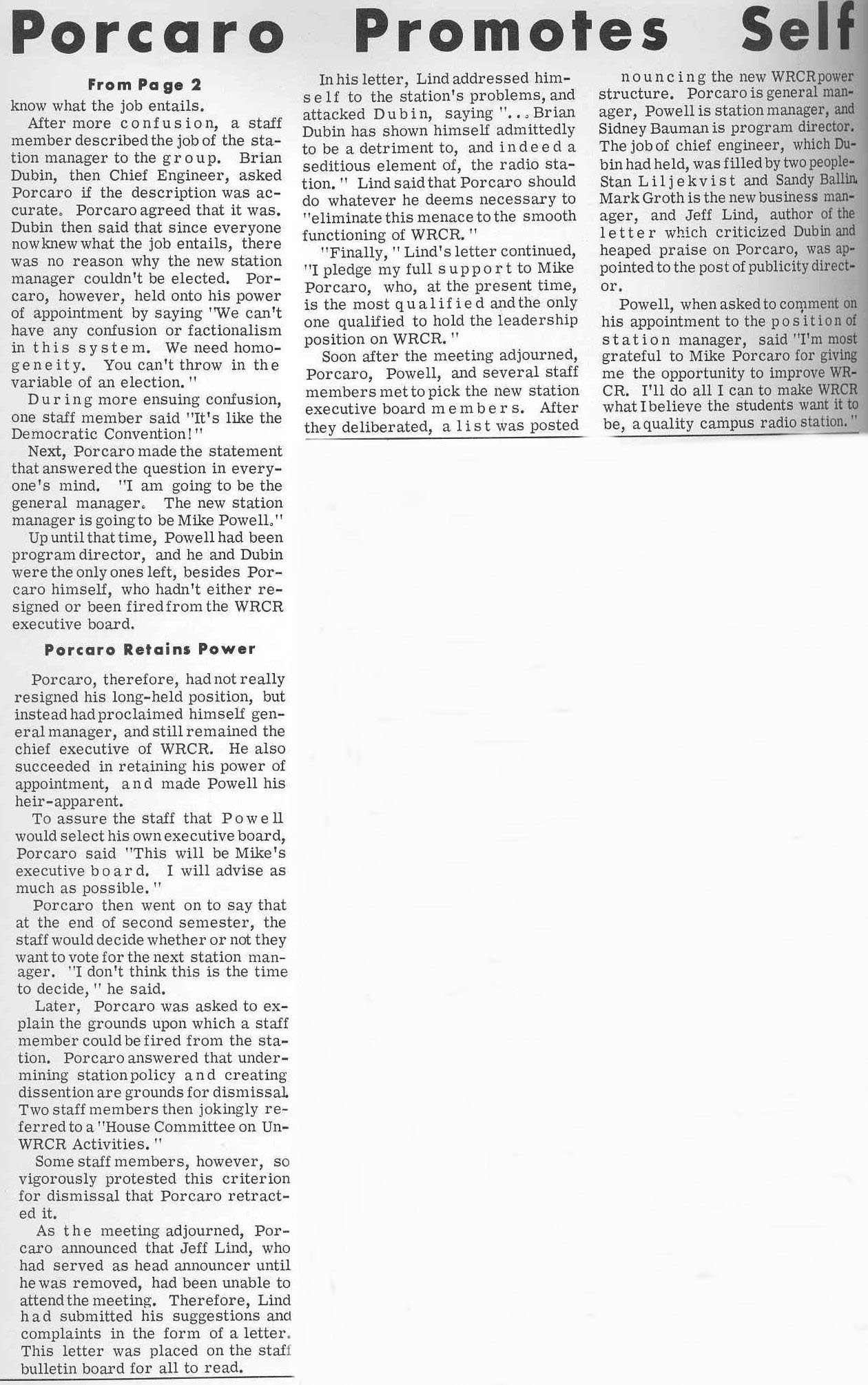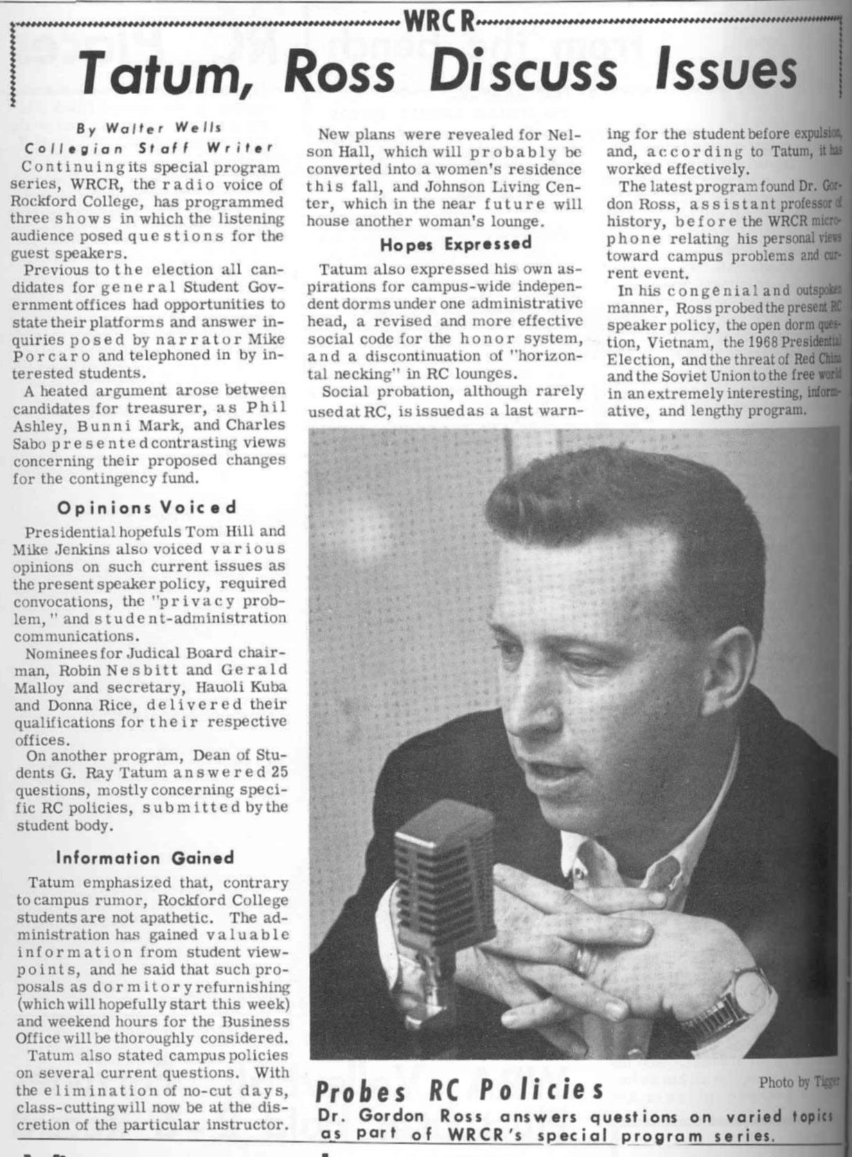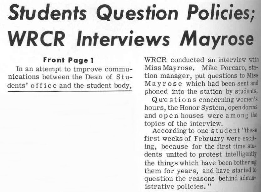 February 21, 1968 - Students Question Policies; WRCR Interviews Mayrose