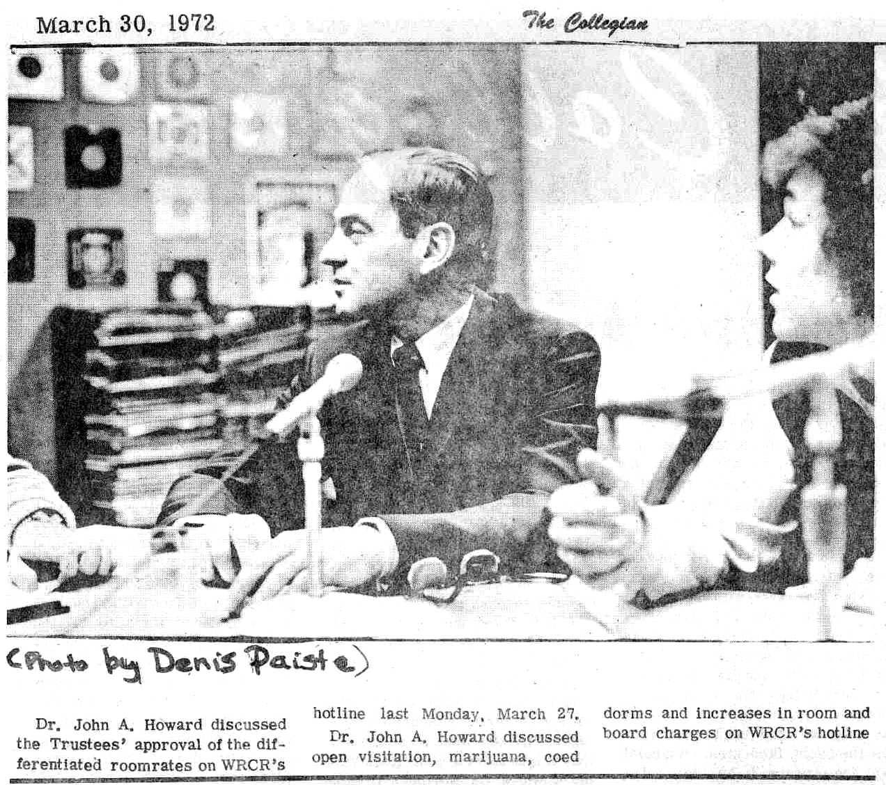 March 30, 1972 - Dr Howard interviewed on WRCR, picture with caption