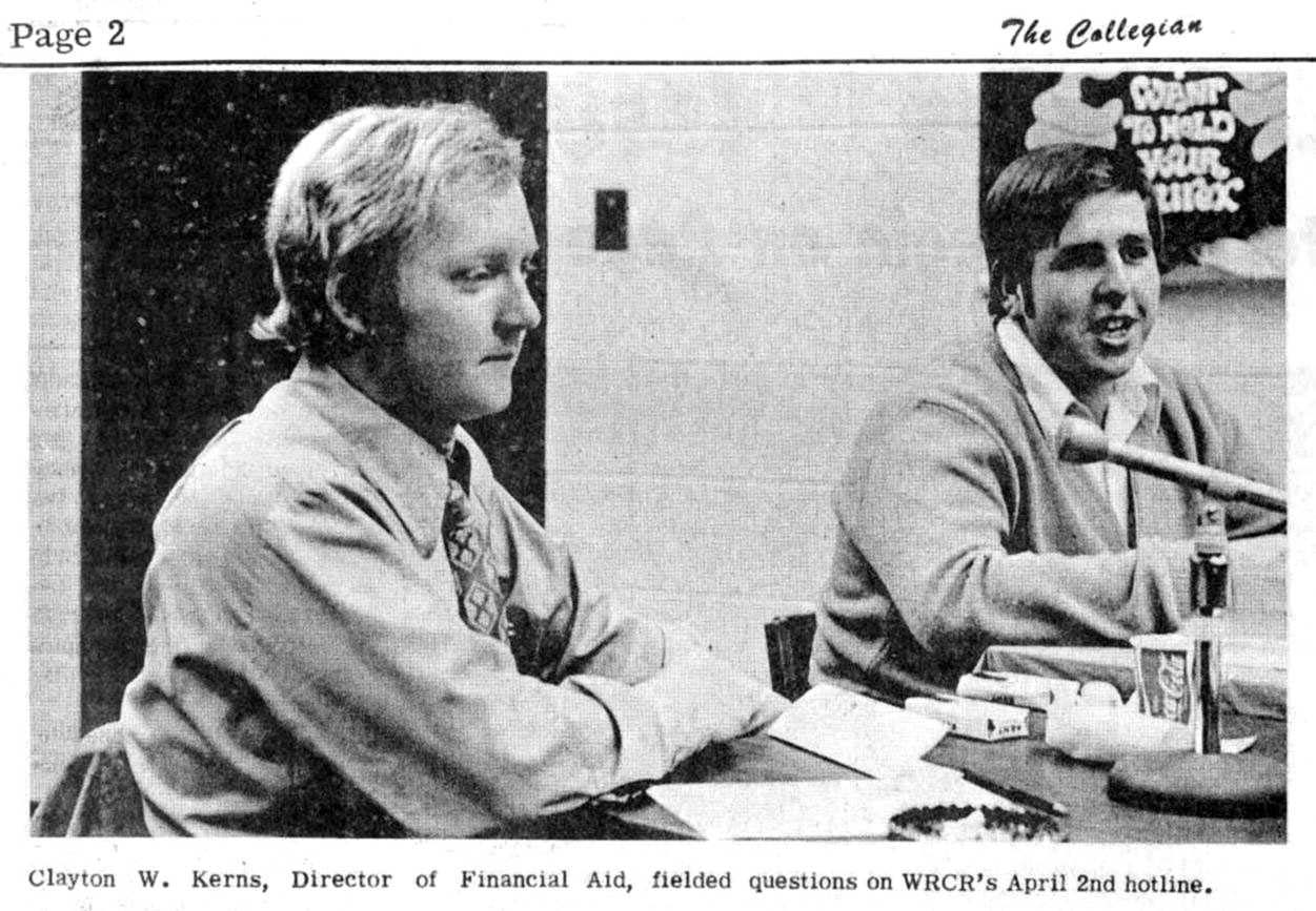 April 5, 1972 - Webb Kerns inverviewed on WRCR, picture with caption