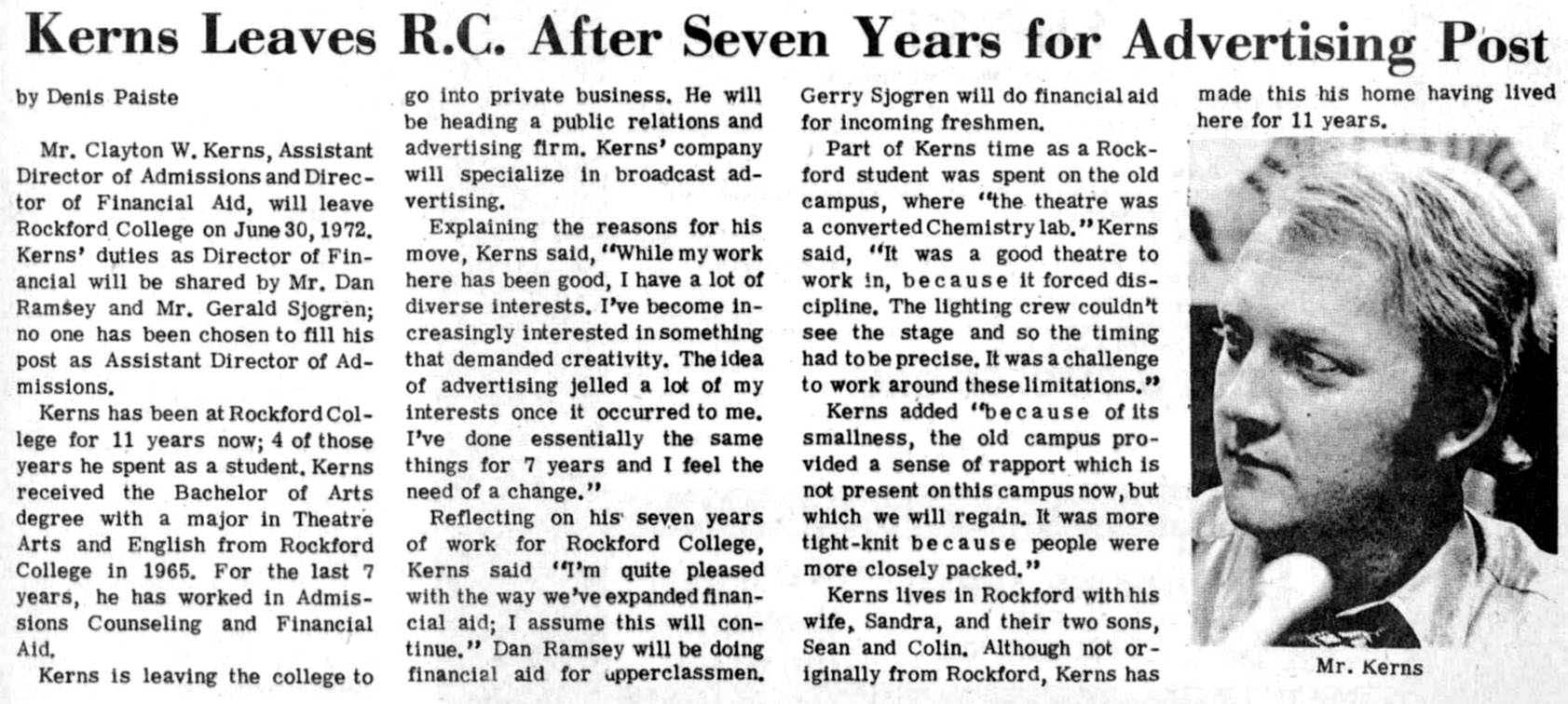 April 13, 1972 - Kerns Leaves R.C. After Seven Years for Advertising Post (picture)