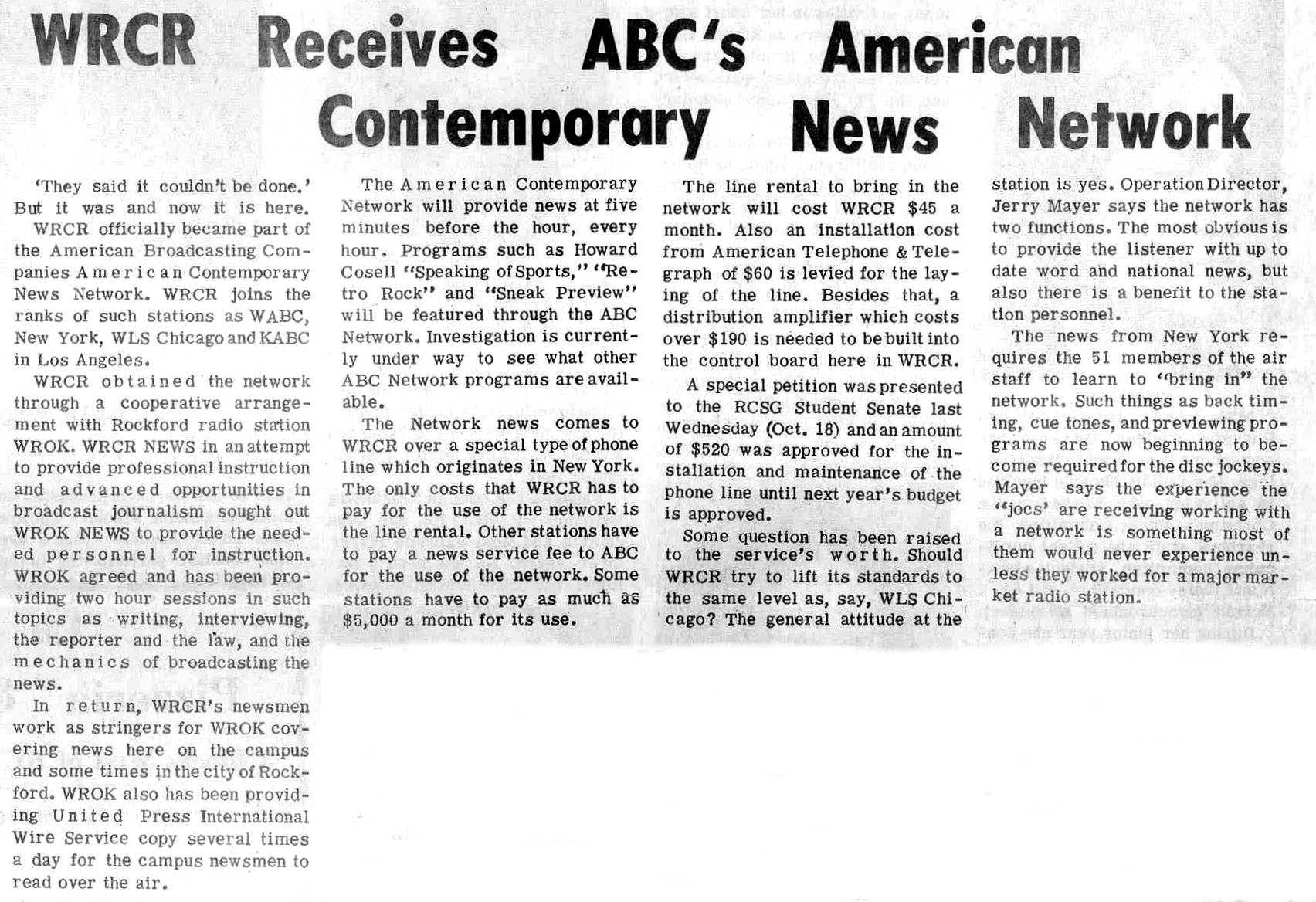 October 27, 1972 - WRCR Receives ABS's American Contemporary News Network