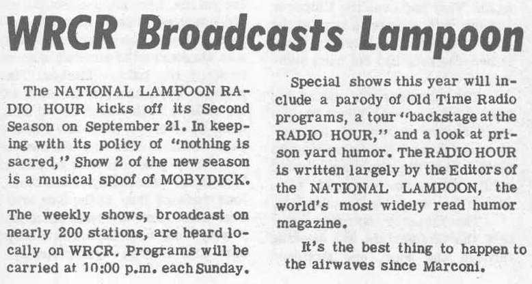 September 23, 1974 - WRCR Broadcasts Lampoon